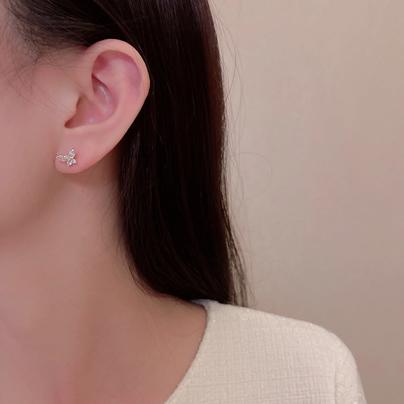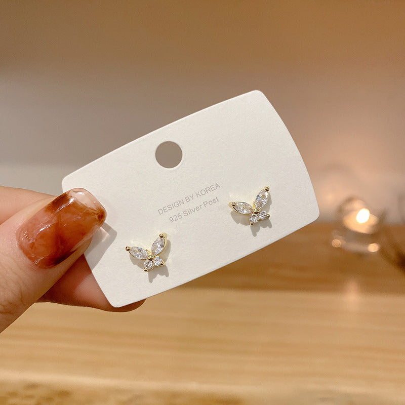 Product information: Type: ear studs Color: Gold Inlay material: gold-plated inlaid artificial gemstone/semi-precious stone Style: Women's Material: Silver Popular elements: Retro, butterfly